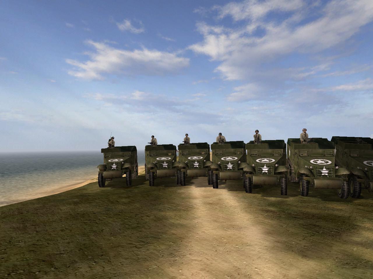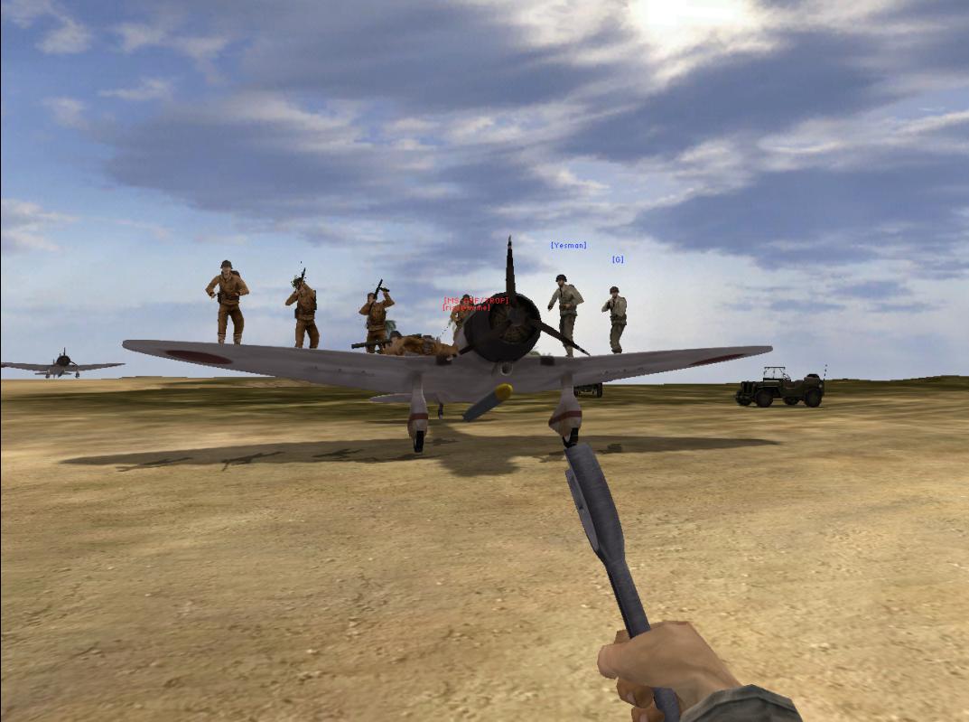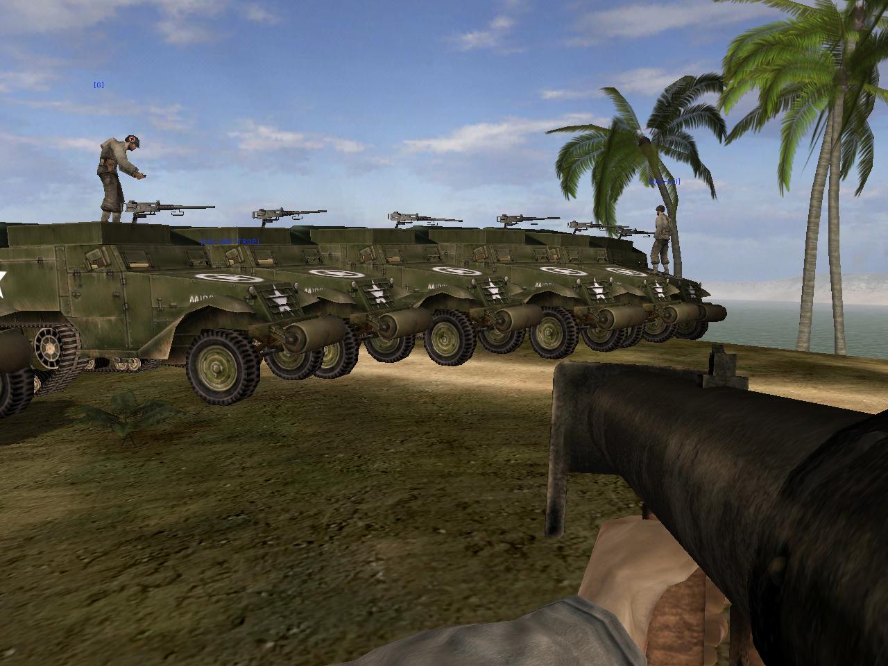 ・飛行場のジープ・戦車が飛行場の旗の近くに移動しています。