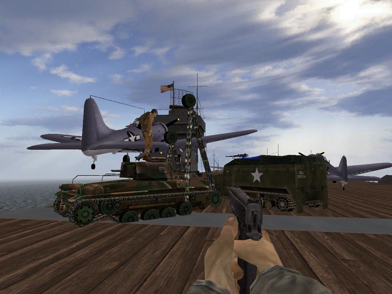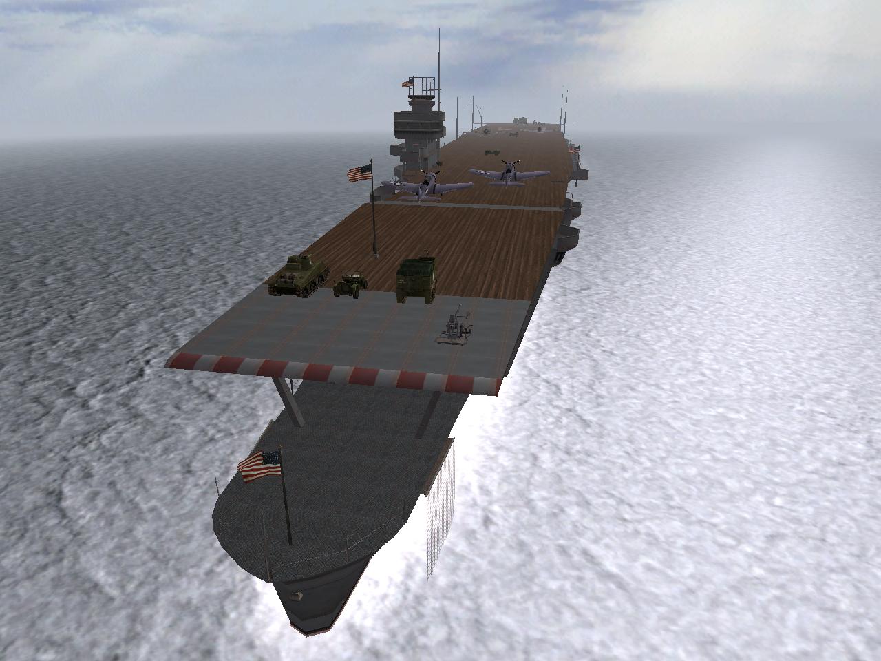 ご覧の通り、空母の上に旗を5つ、その他兵器を一部置いて、完全に空母上で戦闘していただくマップです。